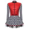 Damen Rennfahrerin Kostüm Schachbrettmuster Langarm Pailletten A-Linie Tüllrock Shorts Fahrerkleid