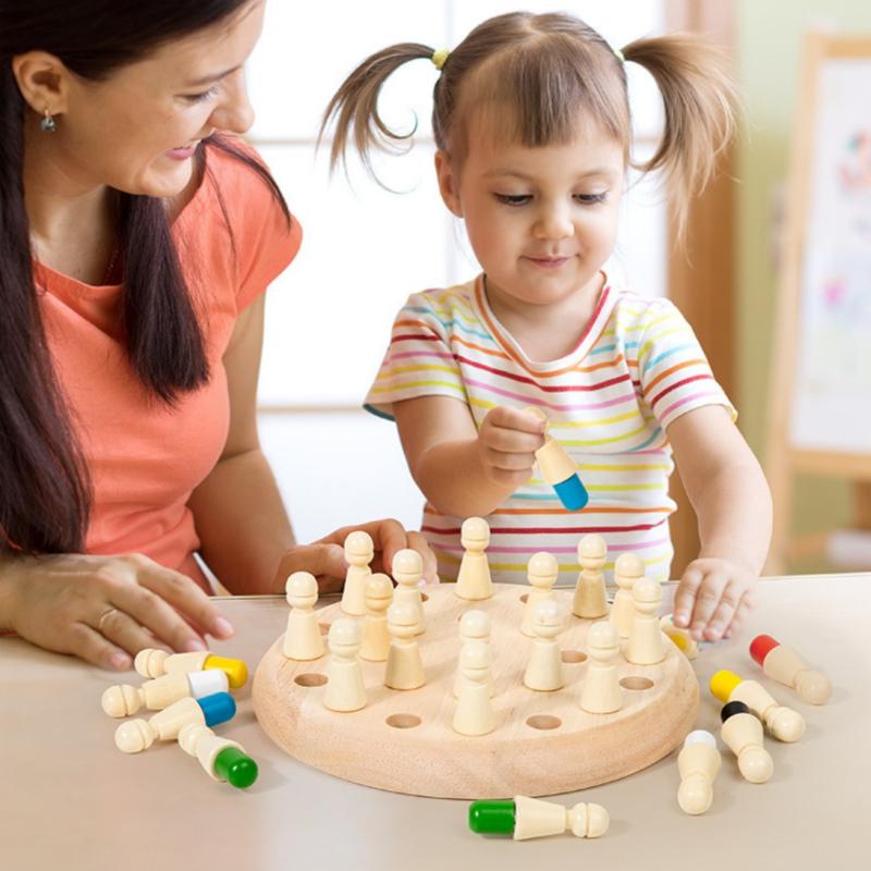 1 Set Streichholzfarben-Memory-Matching-Puzzles Eltern-Kind-Interaktion Lernspielzeug Holz-Memory-Schachbrettspiel für Kinder