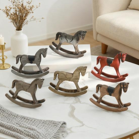 Verschönern Sie Ihre Heimdekoration mit diesem charmanten Schaukelpferd-Ornament. Gefertigt im rustikalen Retro-Stil, verleiht diese Holzfigur jedem Raum eine einzigartige und vintage Note..