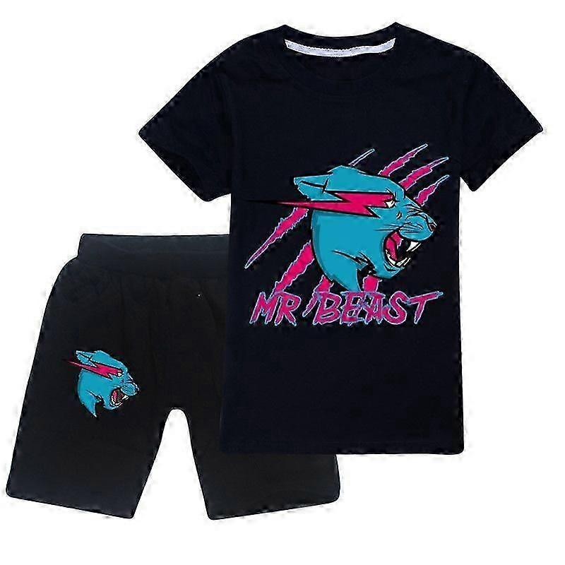 Jungen Mädchen Mr Beast Lightning Cat Pyjama Set Cosplay Kurzarm T-Shirt+Shorts