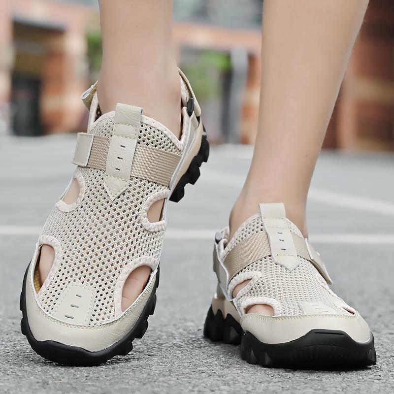 Sommer Atmungsaktive Slipper Herren Taschenkopf Sandalen Hohle Mesh Loch Schuhe Outdoor Rutschfest Leicht Sport Freizeit Strand Schuhe