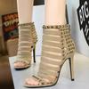 Retro Römische Sandalen Damenschuhe Nieten-Design Sandalen mit Absatz Reißverschluss hinten Sexy High Heels Stiletto 11 cm Ausgeschnitten Sommerschuhe