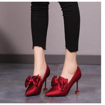 Spitze Schleife Dünne Einzelbestellung Schuhe für Frauen Seide und Satin High Heels 12cm, Übergröße 46 Damenschuhe Absätze
