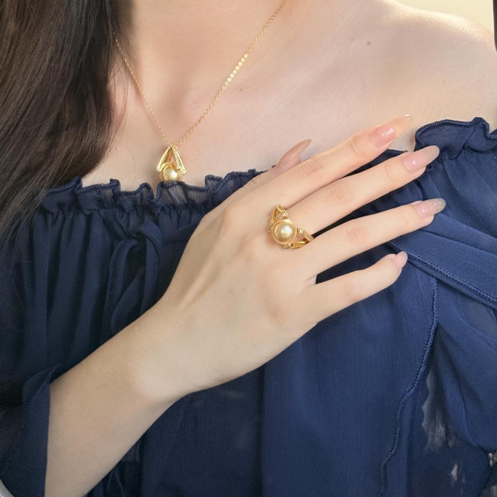 Light Luxury Exquisite Sweet Compact Pearl Ring Necklace Earrings Gold Jewelry Three-Piece Set