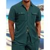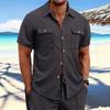 Sommer Herren Kurzarm Lässig Einfarbig Revers Knopf Tasche Vielseitiges Hemd Lockerer Pullover