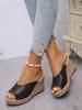 Außenhandel 2025 Koreanische Version Sommer Dicke Sohle Keilabsatz Fischmaul Große Größe Bequeme Ein-Wort-Sandalen Strand Freizeit