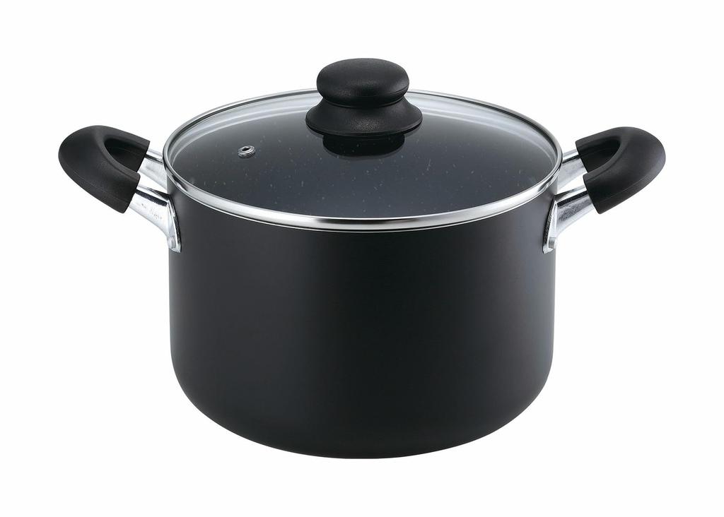 Kakusei Deep Pot, 22cm, 34.5cm x 22.7cm x 21cm, Marble Black, Induction and Gas Stove Compatible, Glass Lid, Non-Stick, GMB-05