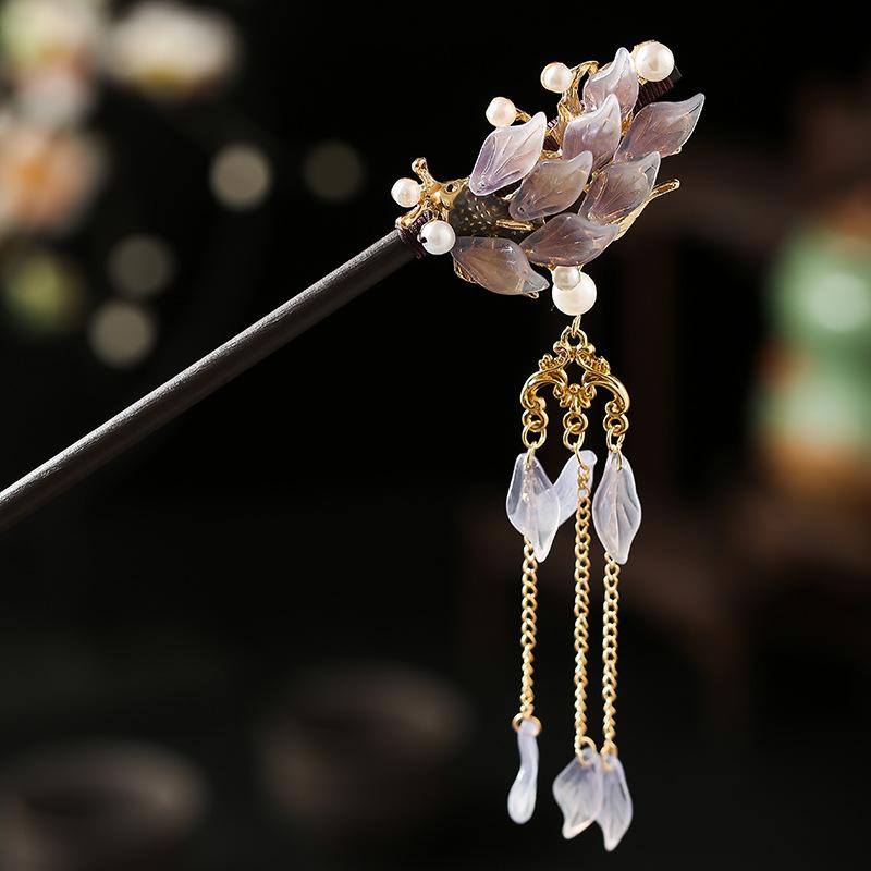 1 Stück Glas Fisch Haarnadel Antiker Kopfschmuck Sandelholz Haarnadel Frische Blütenblatt Haarnadel Neuer Chinesischer Stil Blütenblatt Quaste Haarnadel