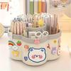Large Capacity Rotating Pen Holder Thickened PP Desk Organizer for Students Multi-functional Storage Case with Non Slip Base