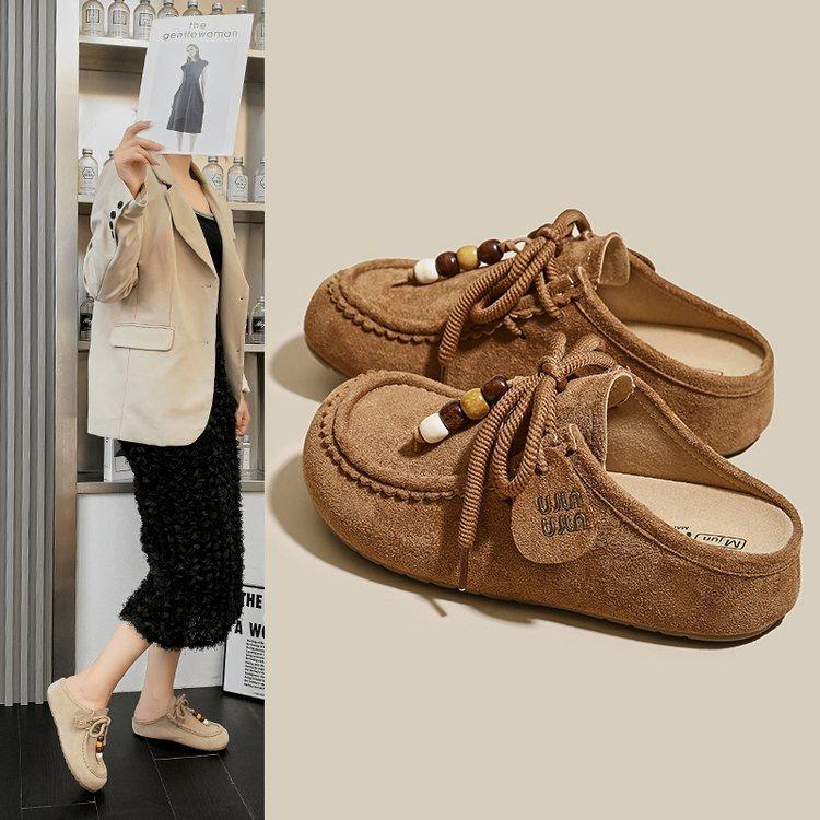 Retro Dicksohlige Perlenbesetzte Tasche Kopf Boken Halbschuhe Damen Ein-Pedal Dicksohlige Literarische Mori Vielseitige Mules