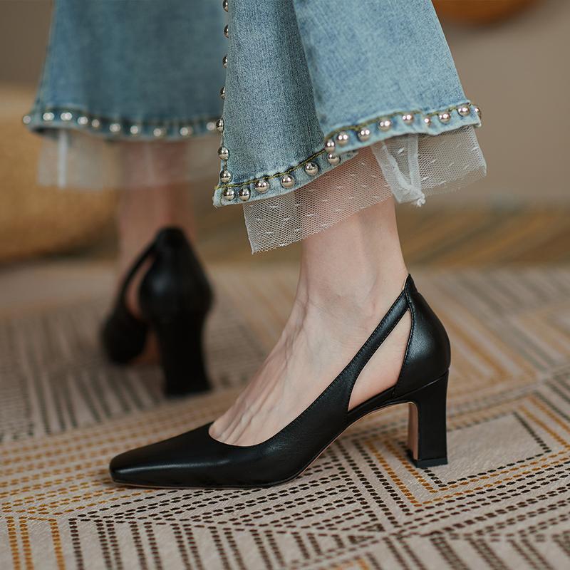 Frühling 2025 neue Mode Pendlerschuhe dicke Absätze Damenschuhe hohler eckiger Kopf Retro Fee hohe Absätze