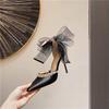 Strassschleife High-Heel-Sandalen 2025 Sommer weiß Hochzeitsschuhe spitz Promi Stiletto Riemchen Einzelne Schuhe schwarz