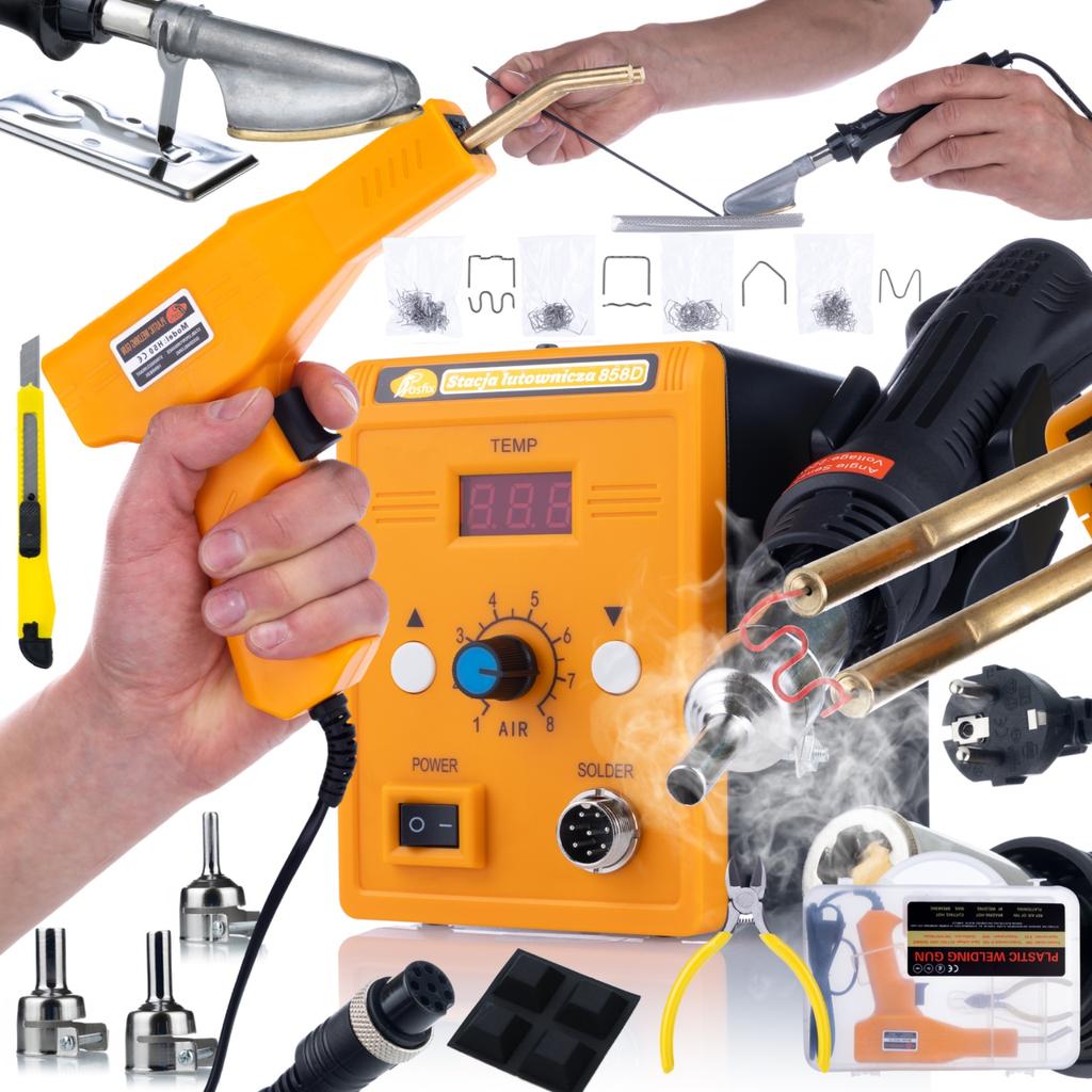 STACJA LUTOWNICZA HOT-AIR ROSFIX 858D + LUTOWNICA ŻELAZKO + ZSZYWACZ DO PLASTIKU W WALIZCE + 200 ZSZYWKÓW