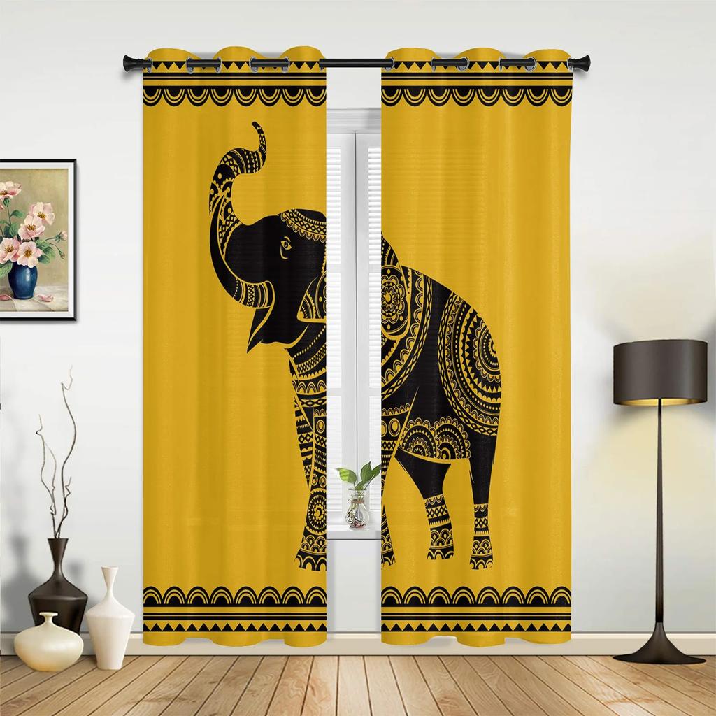 Elefantenkunst Indische Bobo-Stil Vorhänge für Schlafzimmer Wohnzimmer Vorhänge Küche Kinderzimmer Fenstergardine Moderne Heimdekoration