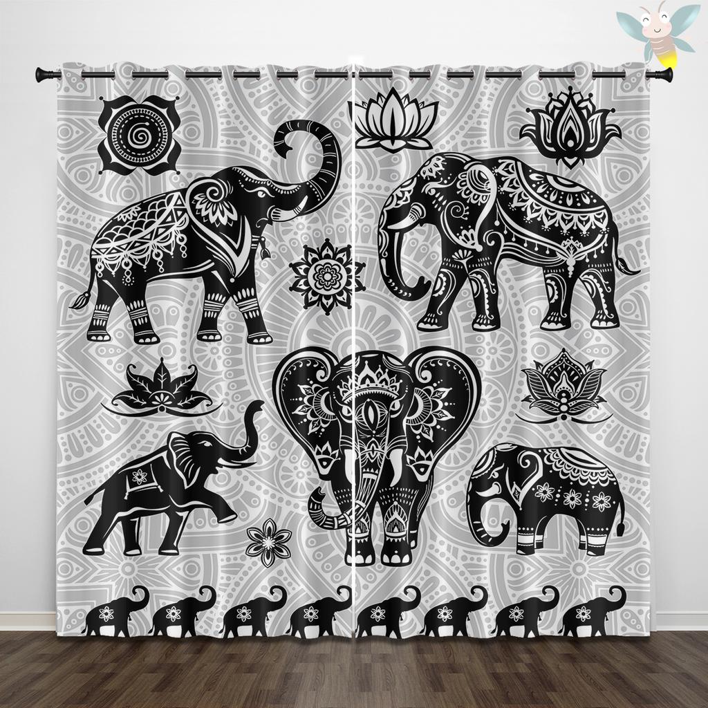 2 Stück Vorhänge im böhmischen Stil mit Tier-Elefantenmusterdruck, zur Dekoration von Schlafzimmern und Wohnzimmern