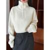 Herbst Winter Halber Stehkragen Reißverschluss Pullover Damen Einfarbig Lässig Allround Strickoberteil