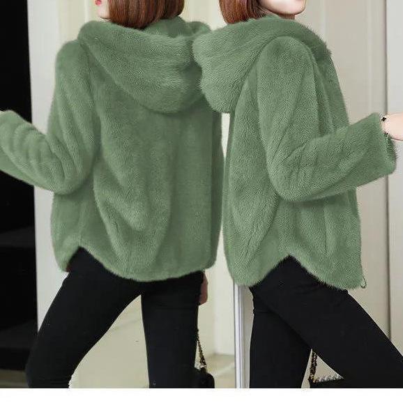 Fleece Verdickter Doppelseitiger Korallenfleece Herbst und Winter Locker Kapuzenpullover Thermopullover Damen Reißverschluss Lammjacke