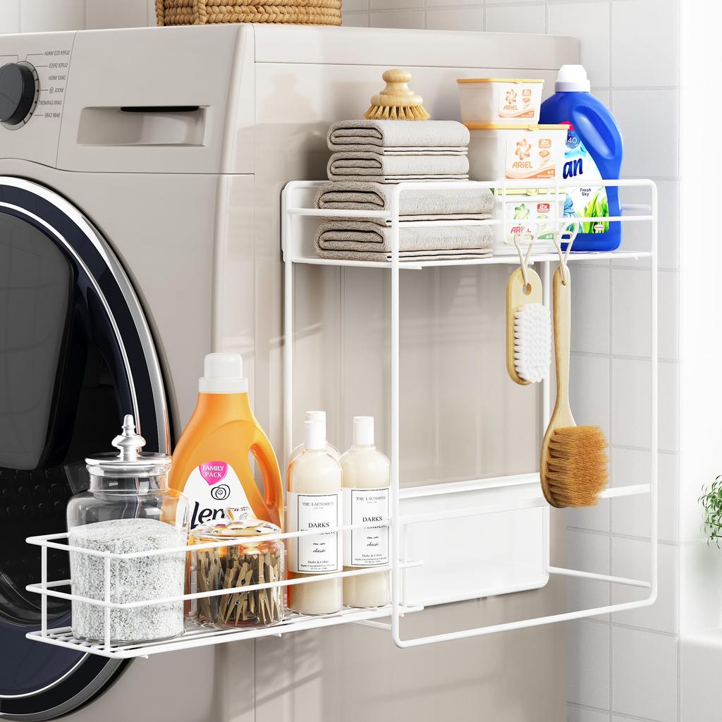 [Einfache Installation mit starken Magneten] Dieses zweistöckige Aufbewahrungsregal verfügt über einen starken Magneten, der kein Bohren oder Schrauben erfordert. Es wird fest an der Seite Ihrer Waschmaschine oder Ihres Kühlschranks befestigt, und die Installation dauert nur wenige Sekunden.. Es kann einfach installiert und bewegt werden, ohne die Wand zu beschädigen, sodass Sie den begrenzten Raum optimal nutzen können.