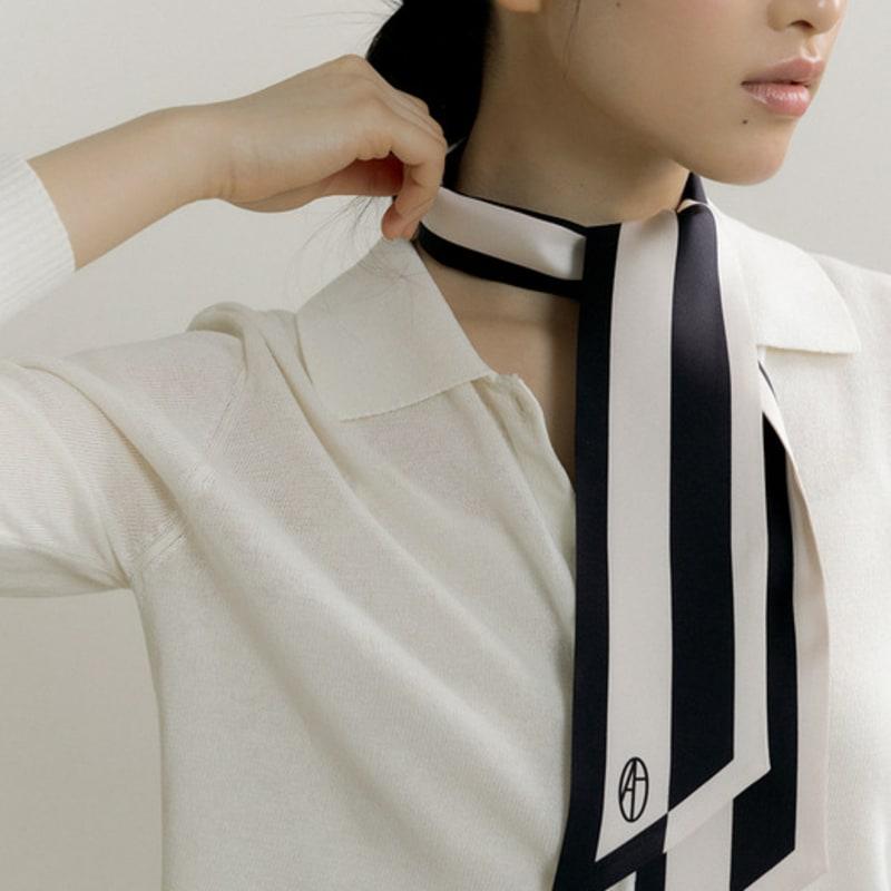 AVVINA PELLE Rahmen Langer Twilly Seidenschal - Schwarz/Creme