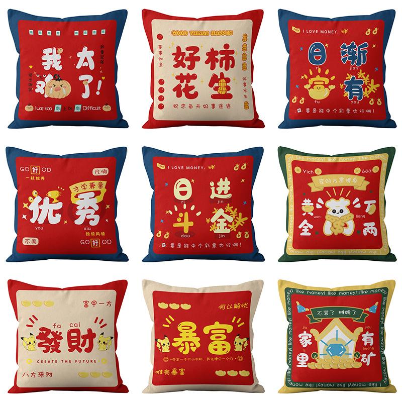 New Chinese Style National Trend Lucky Pillow Auspicious Text Good Luck Home Sofa Bedside Cushion Company Gift