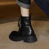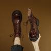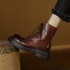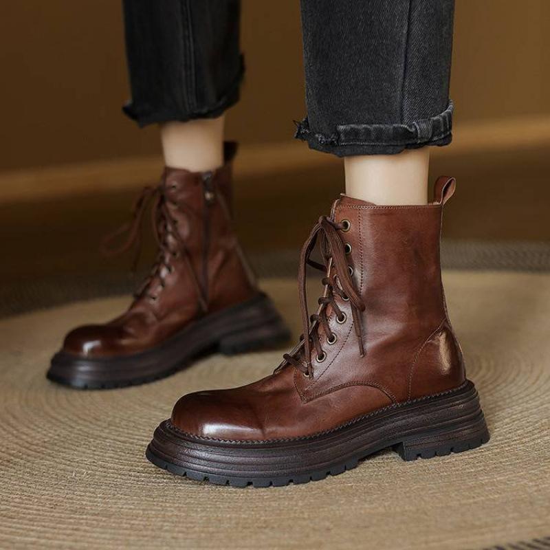 Neue runde Zehenpartie mittlerer Absatz große Größe Ritterstiefel Leder bequem dicksohlige Schnürstiefel Damen Herbst und Winter Rindsleder mittelhohe Stiefel Damen