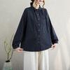 Literarisches Baumwoll- und Leinen-Streifen-Langarmhemd für Lockeren Herbst Neues Oberteil Lässig Vielseitige Knopf-Strickjacke für Damen