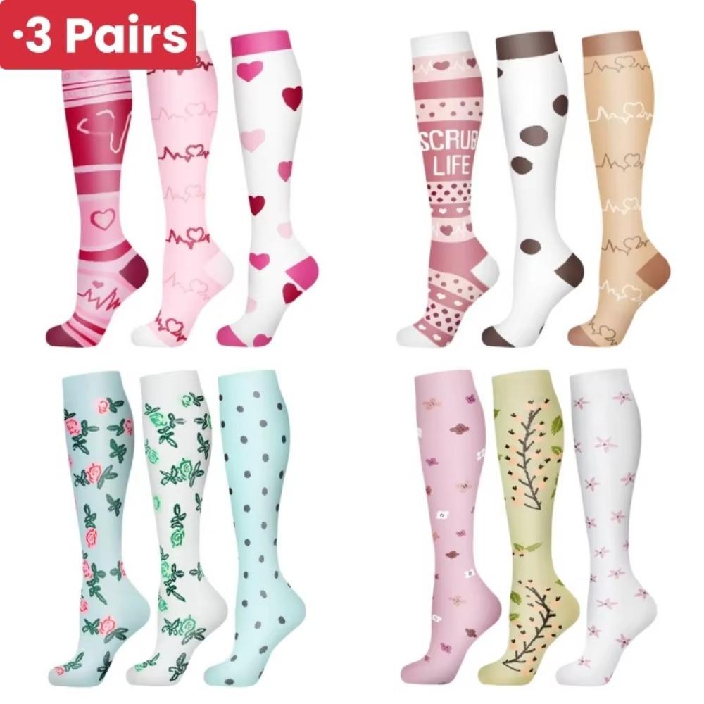 3 Pairs Breathable Compression Socks Soft Nurse Calf Pressure Leg Socks for Outdoor Sports