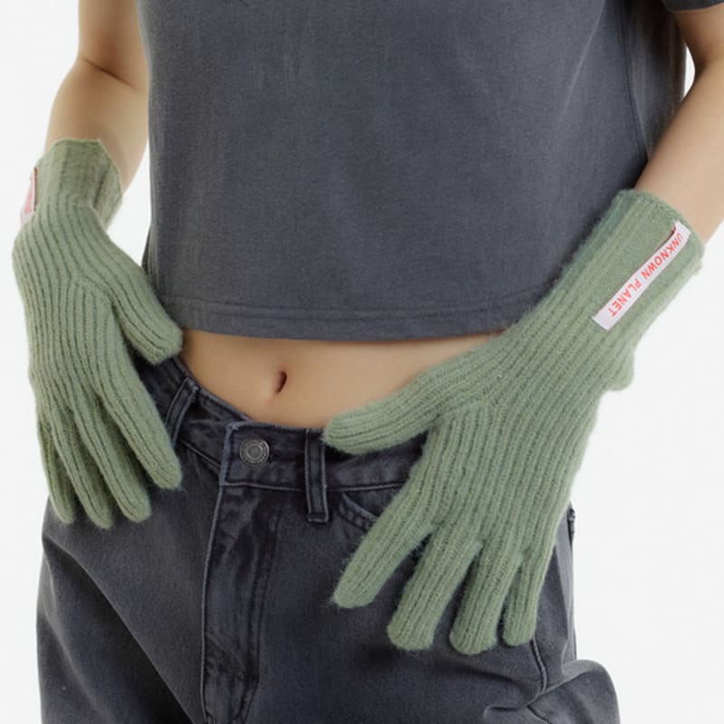 UNKNOWN PLANET Finger Hole Knit Gloves Green_FINGER HOLE KNIT GLOVES GREEN