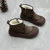 Johnature Handgefertigte Damen-Kurzstiefel aus echtem Leder mit runder Zehenpartie, flachem Boden, verdickt, warm gefüttert mit Wolle, Schneestiefel