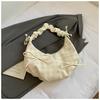 Korean version bow pleated hand bag new shoulder bag foreign style plaid commuter messenger bag casual crescent bag tide