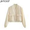 BITCED Spring Women's Oversized Pocket Jacket with Stand Collar
