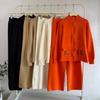 Europäisches und Amerikanisches Herbst-Strickjacken- und Weiter Hosenanzug-Set für Damen