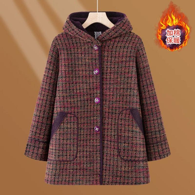 Women's autumn and winter clothing thickened warm woolen jacket long plaid imitation mink velvet coat