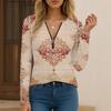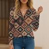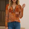 2025 Neue Damen Patchwork Freizeit Langarm V-Ausschnitt Bedruckt Vielseitige Freizeit Langarm Oberteile