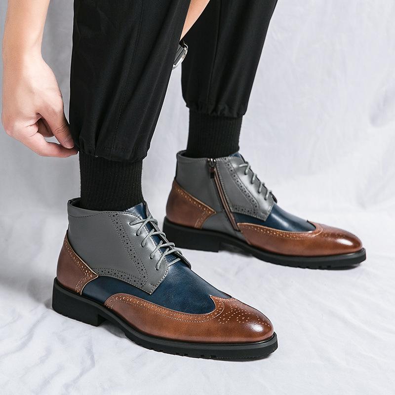 Herren-High-Top-Lederschuhe für Herbst und Winter Größe 38-48 Britische Farbabstimmung Casual Übergröße Business-Brogues Herrenschuhe