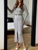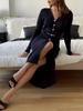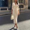 Elegantes europäisches und amerikanisches Damen-Strickkleid lang mit Knöpfen vorne und Gürtel