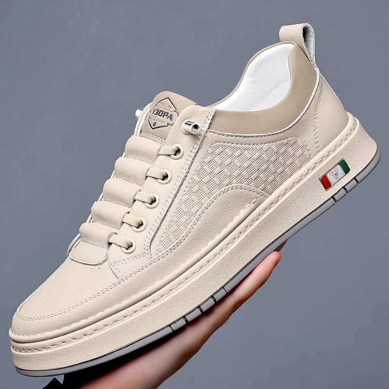 Herbst und Winter neue atmungsaktive Leder-Einpedalschuhe mit weicher Sohle, vielseitige kleine weiße Schuhe, Sport- und Freizeit-Board-Schuhe, trendige Mode leat