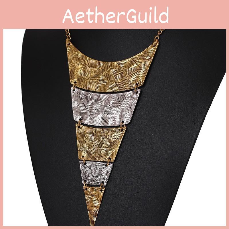 Diese mehrlagige Halskette im Vintage-Stil verfügt über markante geometrische Dreiecksanhänger aus Legierung mit galvanisierter Oberfläche und bietet ein vielseitiges Accessoire für Modebegeisterte.. Ideal für von Retro inspirierten Outfits, verleiht es jeder Garderobe eine unverwechselbare Note.. Zur Pflege mit einem weichen Tuch abwischen.