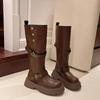 Schwarze Retro-Plateau-Stiefel mit dickem Absatz im britischen Stil, Damen 2025 Herbst und Winter neue Stiefel, hohe und schlanke Reiterstiefel