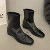 Sanfter Wind Schleife kurze Stiefel Herbst 2025 neu eckige Spitze flache Sohle vielseitige Damenstiefel einfarbig schlichte Damenstiefel