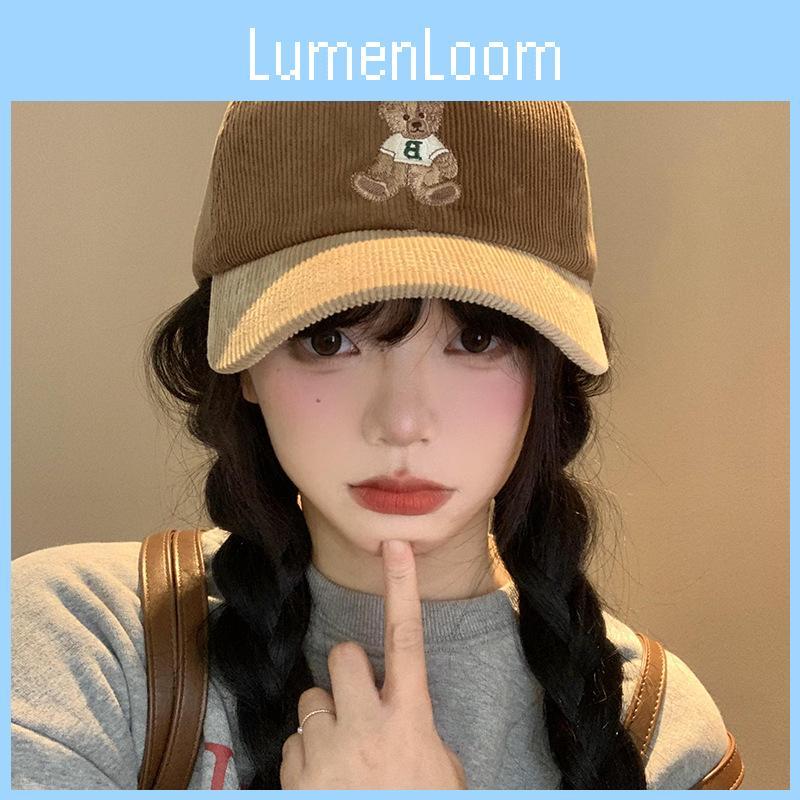 Bear Cozy Corduroy Embroidered Cap For Women In Stylish Colors For Fall Winter
