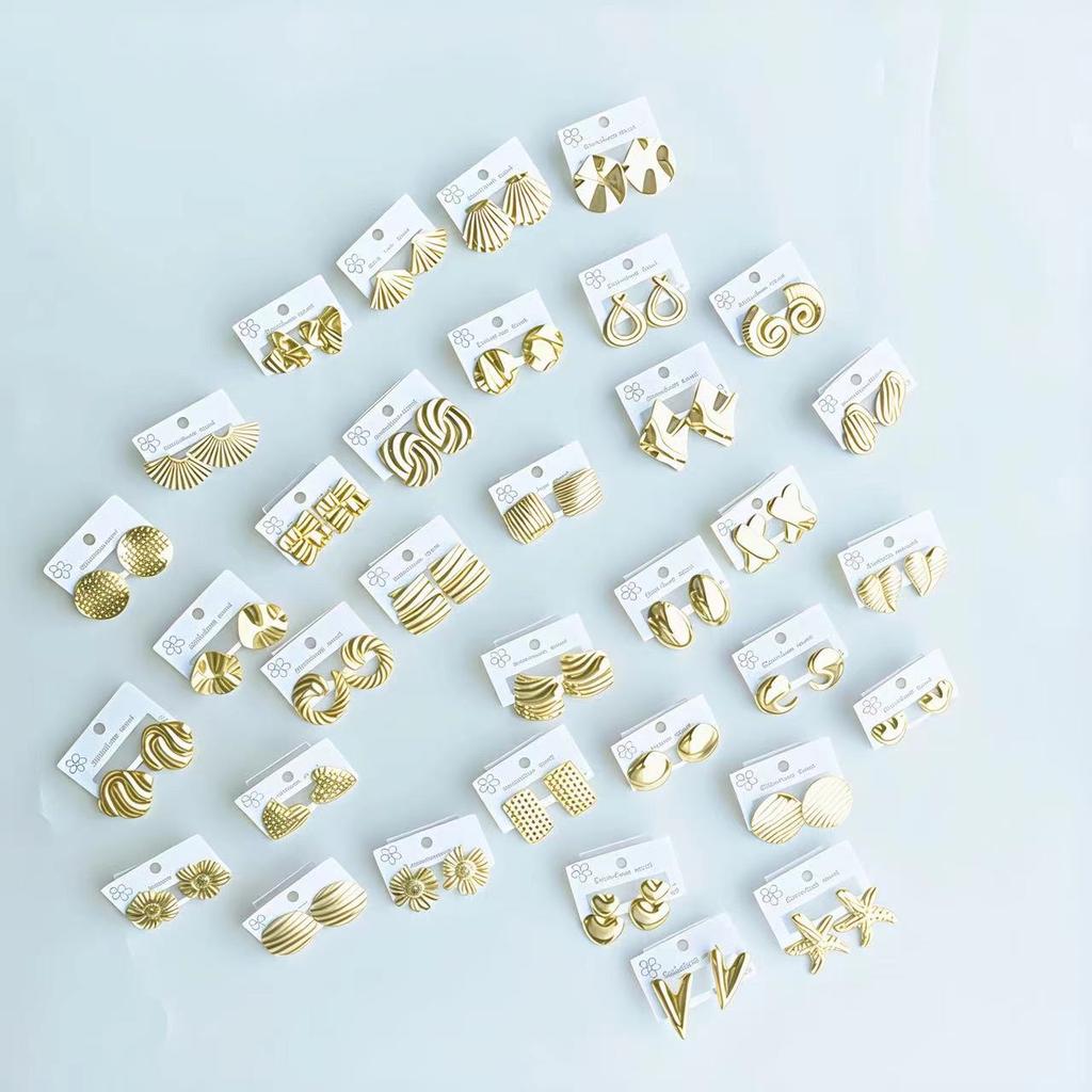 Elegante Damen Große Ohrstecker Vintage Linientextur Herz Geometrisches Florales Design Schmuck Für Frauen Stil Zufälliger Versand