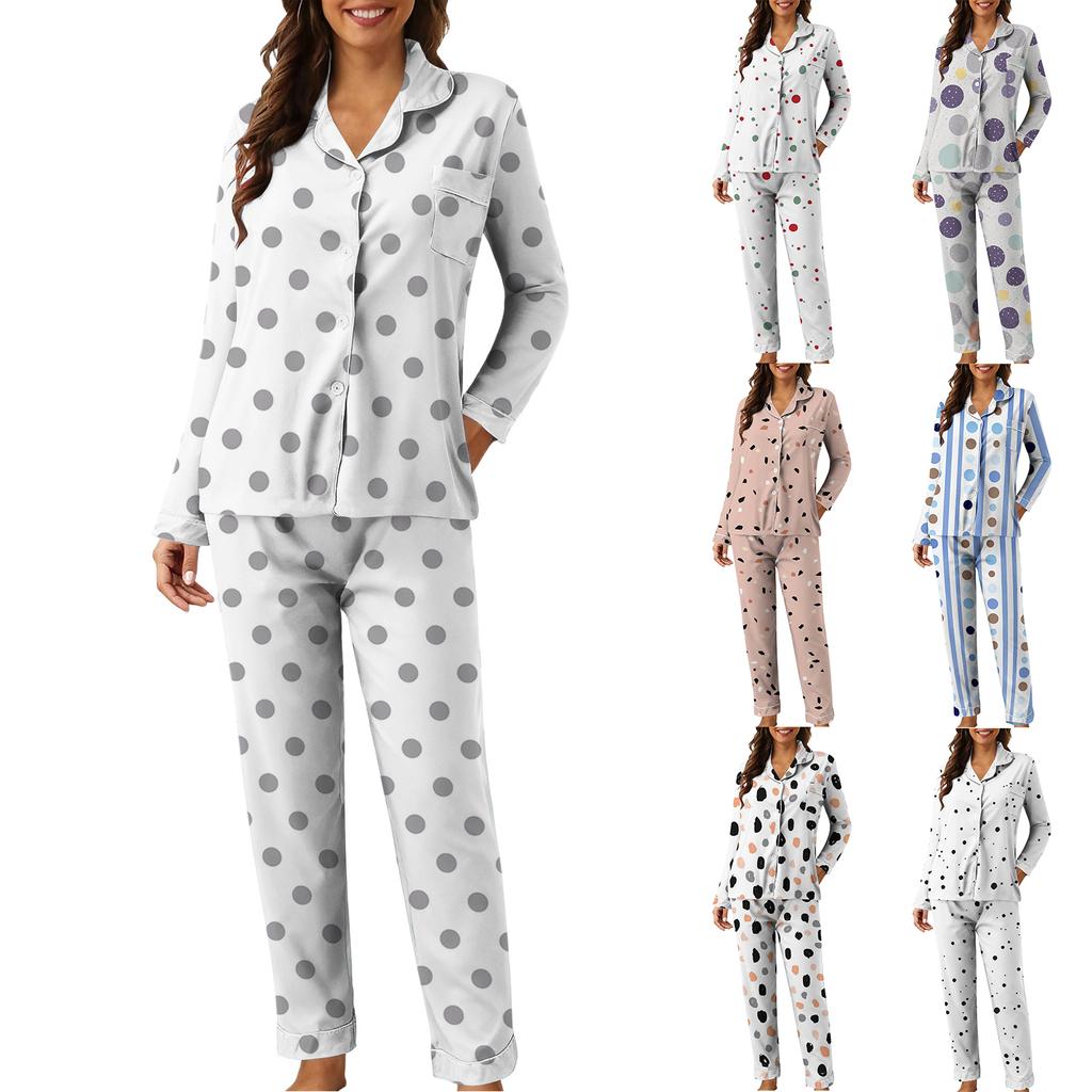 Damen Casual Mode Polka Dot Print Langarm Hosen Homewear Set