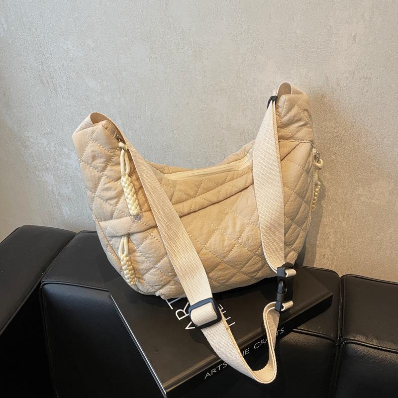 Autumn and winter nylon cloth grid cotton clothing bag 2025 new solid color texture versatile leisure sports dumpling bag shoulder bag