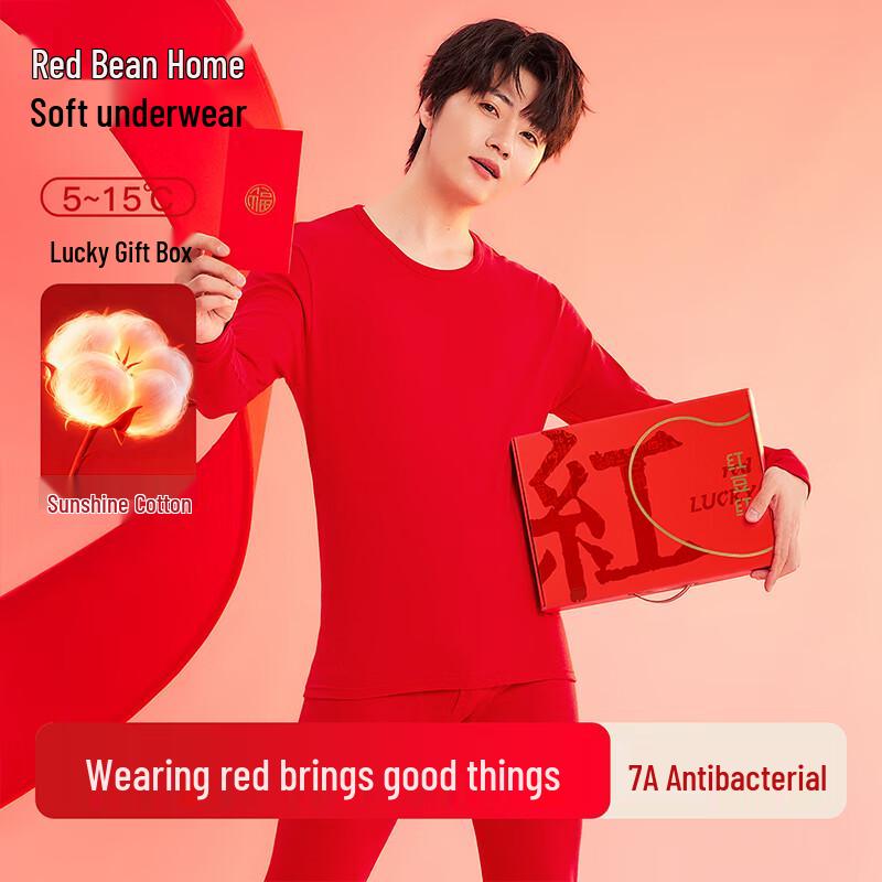 Hongdou Home Men's Lucky Red Pure Cotton Thermal Underwear & Sock Gift Set