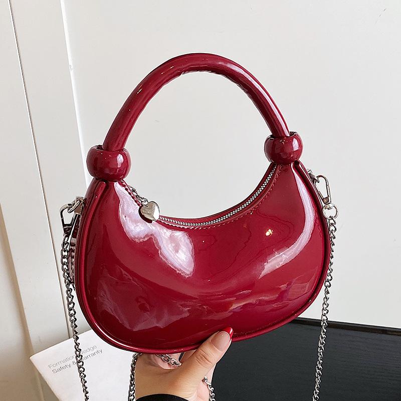 Trend wholesale fashion simple personality patent leather portable dumpling bag casual versatile commuter chain messenger bag women