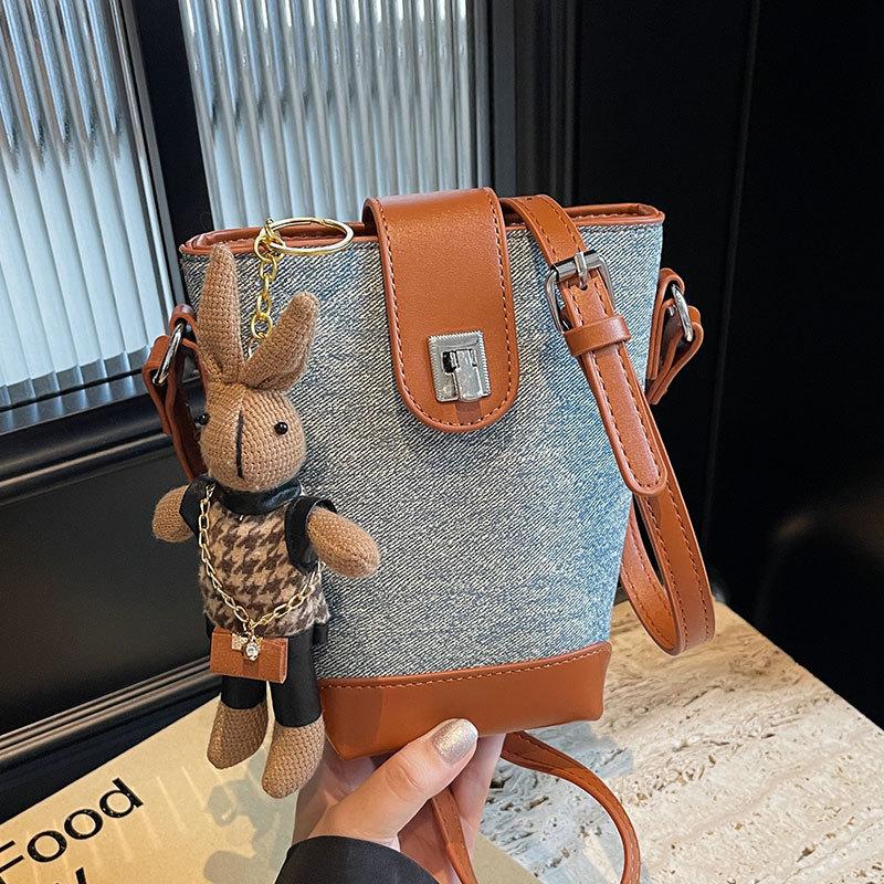 This year's popular niche design contrasting color temperament bucket bag women's casual versatile fashion commuter style messenger bag