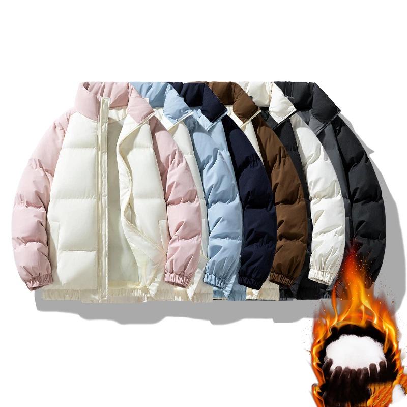 Winterliche Trendige Dicke Farbblockierte Stehkragen Baumwolljacke für Paare