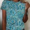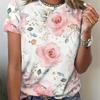 Elegant, Fashionable And Fresh Floral Print Summer Round Neck Women's Slim T-shirt Summer Casual Versatile Women's 2K Top