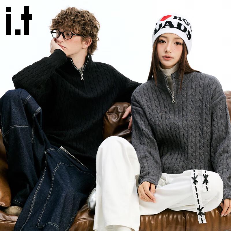 Fingercroxx Pullover mit halbem Reißverschluss im japanischen Stil